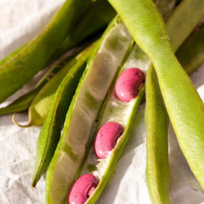 Bohnen zählen zu den beliebtesten und auf der ganzen Welt angebauten Gemüsesorten. Neben den verbreiteten grünen Bohnen, die in der Regel frisch gekocht oder auch als Salat verzehrt werden, gibt es verschiedene Sorten, deren Kerne man meistens in getrockneter Form verwendet. Zu den letzteren gehören die aus den tropischen und subtropischen Wäldern Mittel- und Südamerikas stammenden Wachtelbohnen – eine alte Spezialität, die noch von vielen Bamberger Gärtnern angebaut und verkauft wird. Auch in Italien erfreut sich die Sorte großer Beliebtheit; sie wird dort als „römische Bohne“ bezeichnet und ist als Delikatesse sehr begehrt.